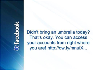 •  InfoQue. Nobody wants to look ads all day. Keep your viewers watching the screen by including news, sports, stock updates, current weather forecasts for specific ZIP codes, and social media: Facebook, Twitter, Flickr, and Instagram.